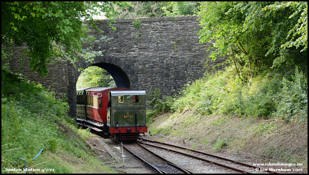 No 11 'Maitland' passes under the bridge carrying the main Douglas to Castletown road over the railway, before entering Santon Station.