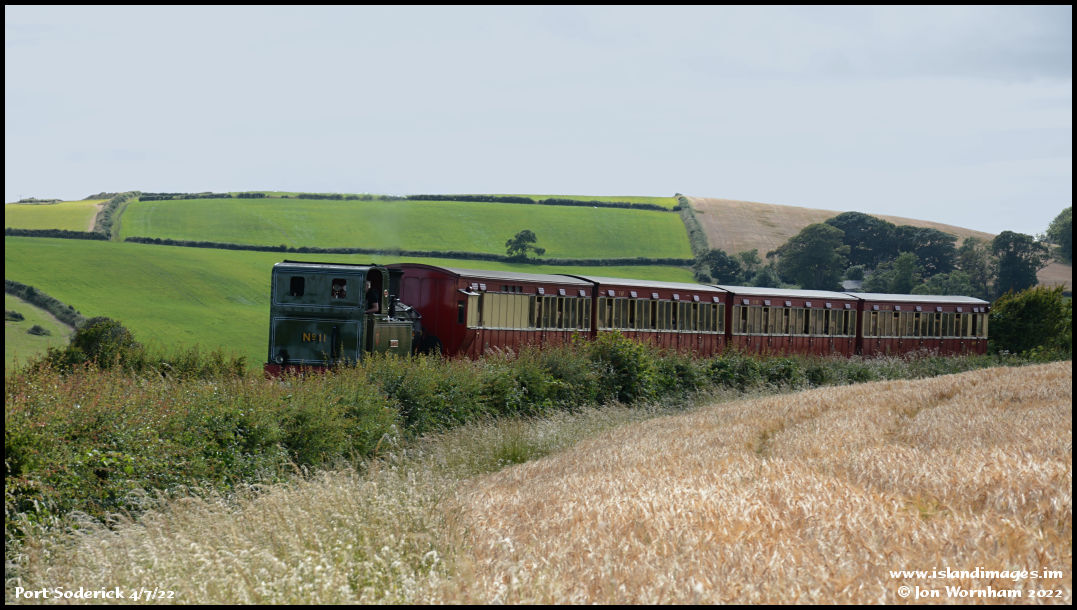 Catching up with the train for a last time as it traverses the reverse curves climbing up from Port Soderick station to Keristal.