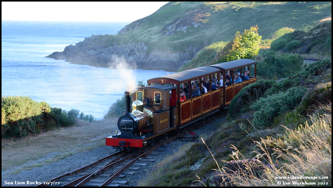 'Brown Bear' has completed a return service to Lhen Coan and is pictured entering the station area at Sea Lion Rocks with Groudle Bay as a nice backdrop.