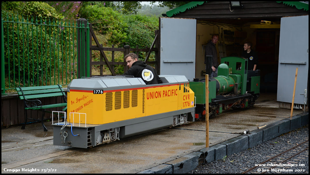 'Union Pacific' draws the line's sole steam locomotive 'King Crogga' out of the workshops.