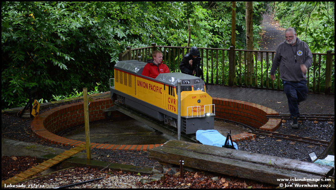 Turning 'Union Pacific'. The line has turntables at each end to turn the USA outline locomotives.