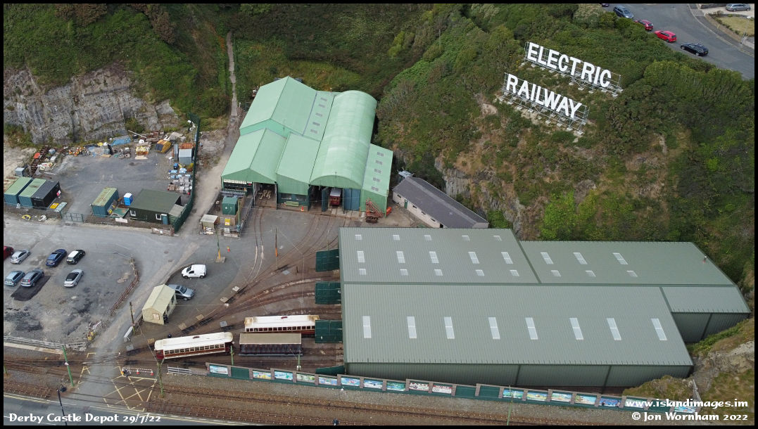 A semi vertical view of the Manx Electric Railway depot and workshops.  There used to be two other depots, but the Ramsey one was demolished a few years ago.  The Laxey one was rebuilt and still used.