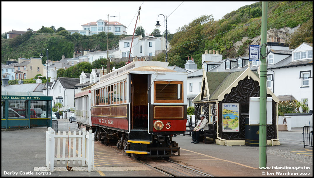 With the drone stowed away again, I've strolled over to the terminus area.  The Horse Tram had departed but No 5 has now boarded passengers and will shortly be heading off towards Laxey.