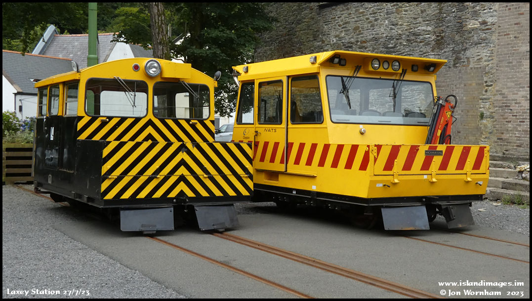 This is what I had come to see at Laxey, the two NATS Wickham railcars out in daylight during the summer. The newer one on the right is used for ferrying radio technicians to Snaefell summit when the mountain railway isn't running.