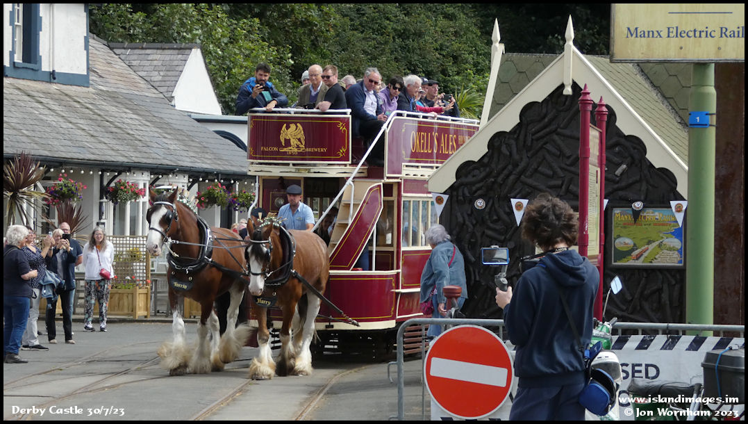 It's time to go and Torrin and Harry head out from Derby Castle with tram No 18.