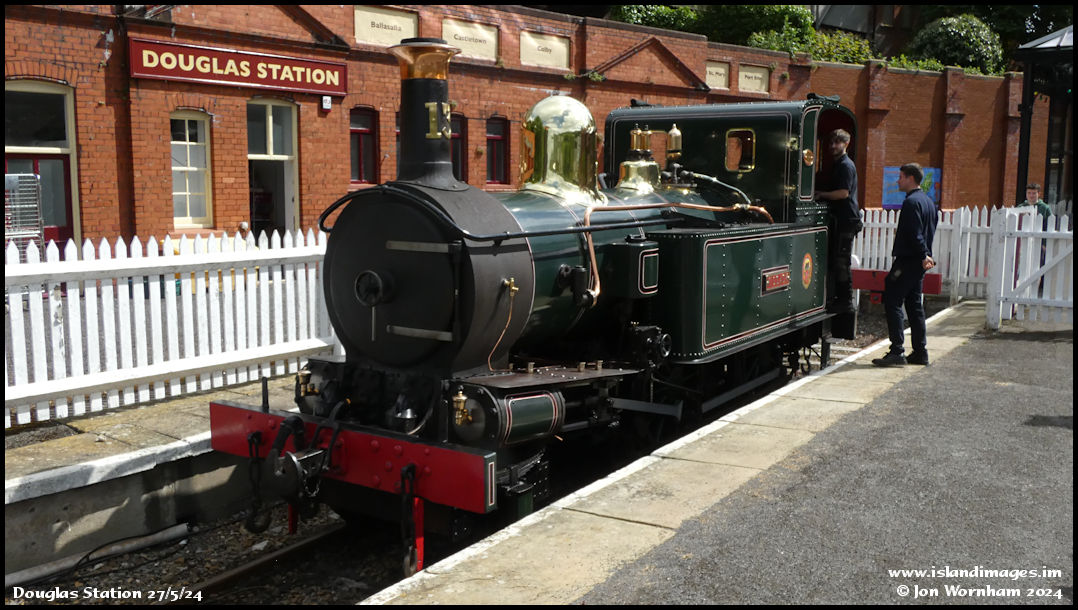 IMR No 13 'Kissack' has just arrived at Douglas with the 10:00 from Port Erin and has run forwards onto the stub before taking the engine release road.