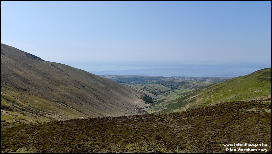 A little further along the track and at my next flying location, looking down into Ballakinnag Glen where I walked to on the 15th. Slieau Freoaghane rising steeply on the left.