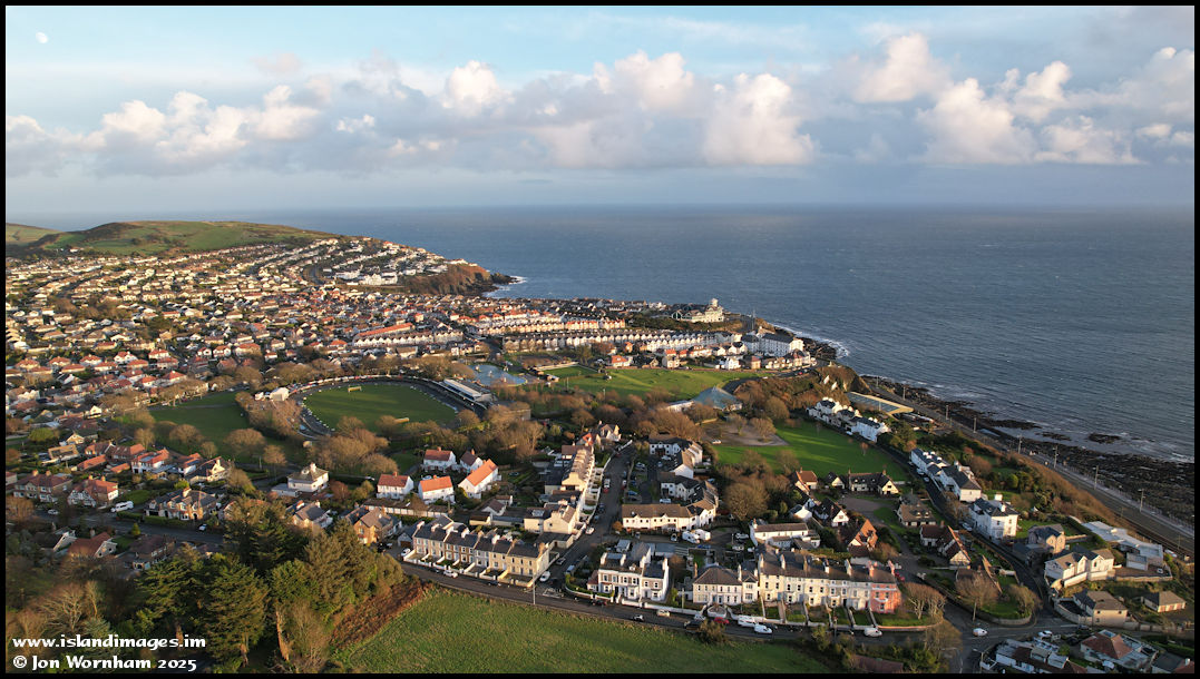This is looking across the lower part of Onchan, with the Pleasure Park around centre.