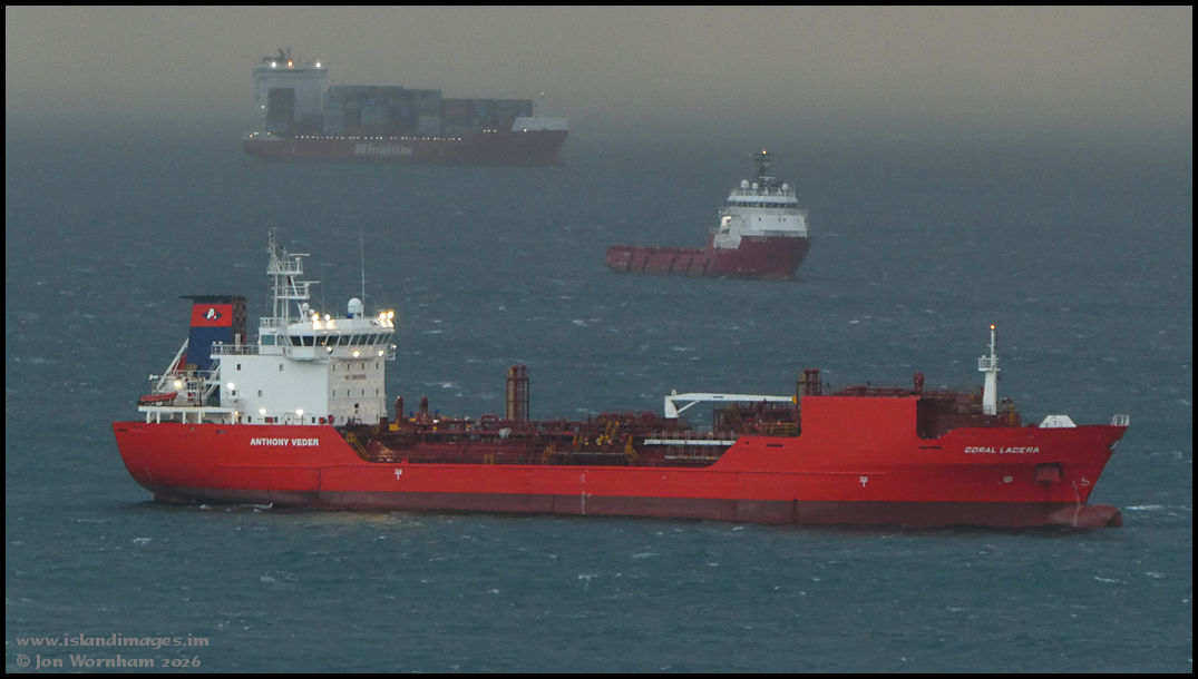 Using the zoom on the compact camera to get a tight frame on the 'Coral Lacera', 'FS Balmoral' and 'Big Orange', the latter a bit obscured by a hail shower.