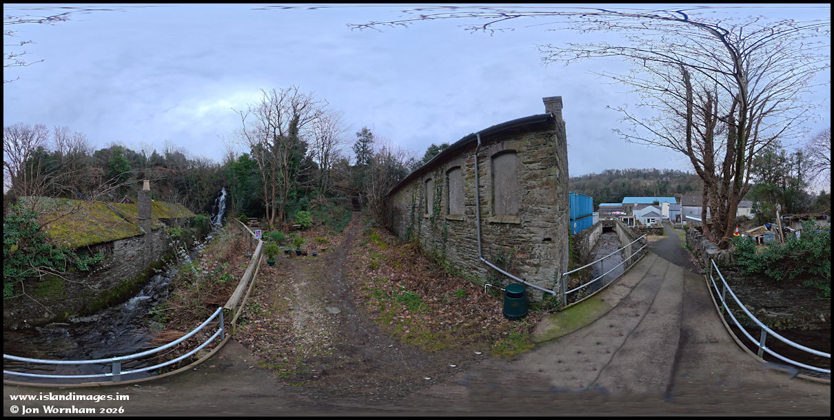 If you don't know where to look it's easy to miss the Quarry Falls as they are tucked away on a footpath down a little alleyway between houses. This panorama was shot around half way between the road and the falls.