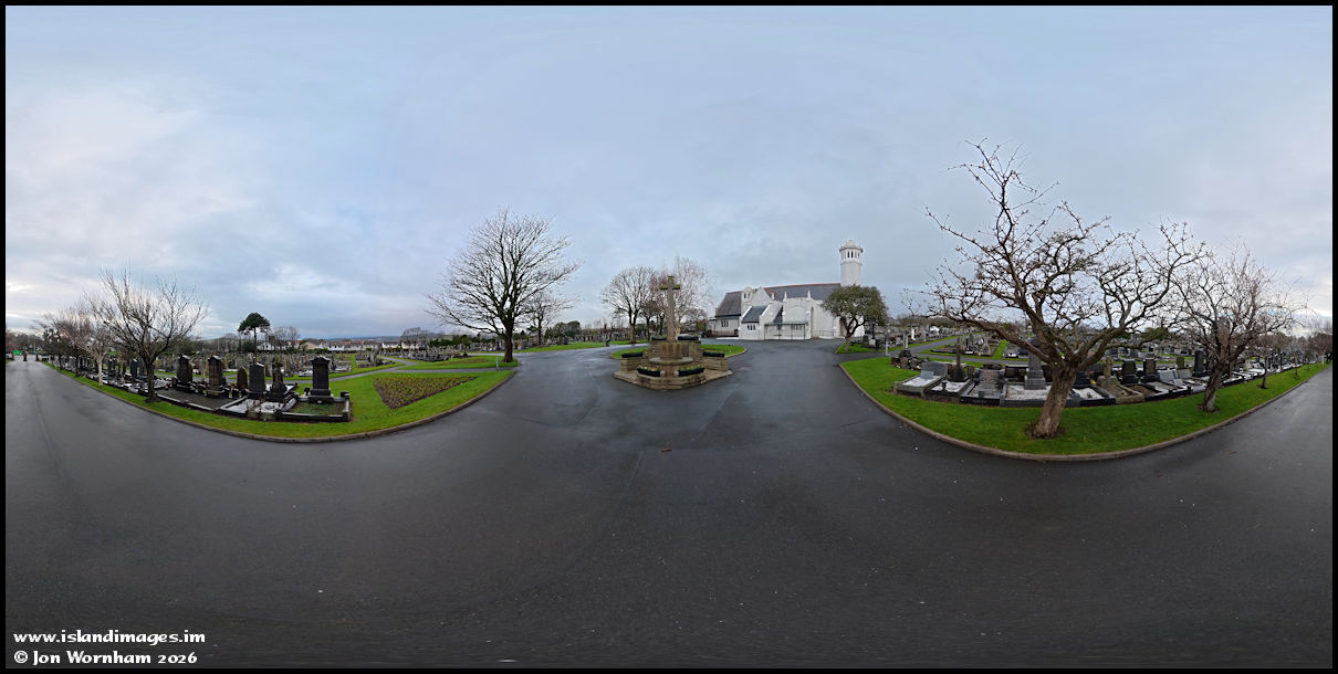 360 degree panorama on the entrance road to the Douglas Borough Cemetery and Crematorium. The cemetery was established in 1899 and contains a very curious feature!