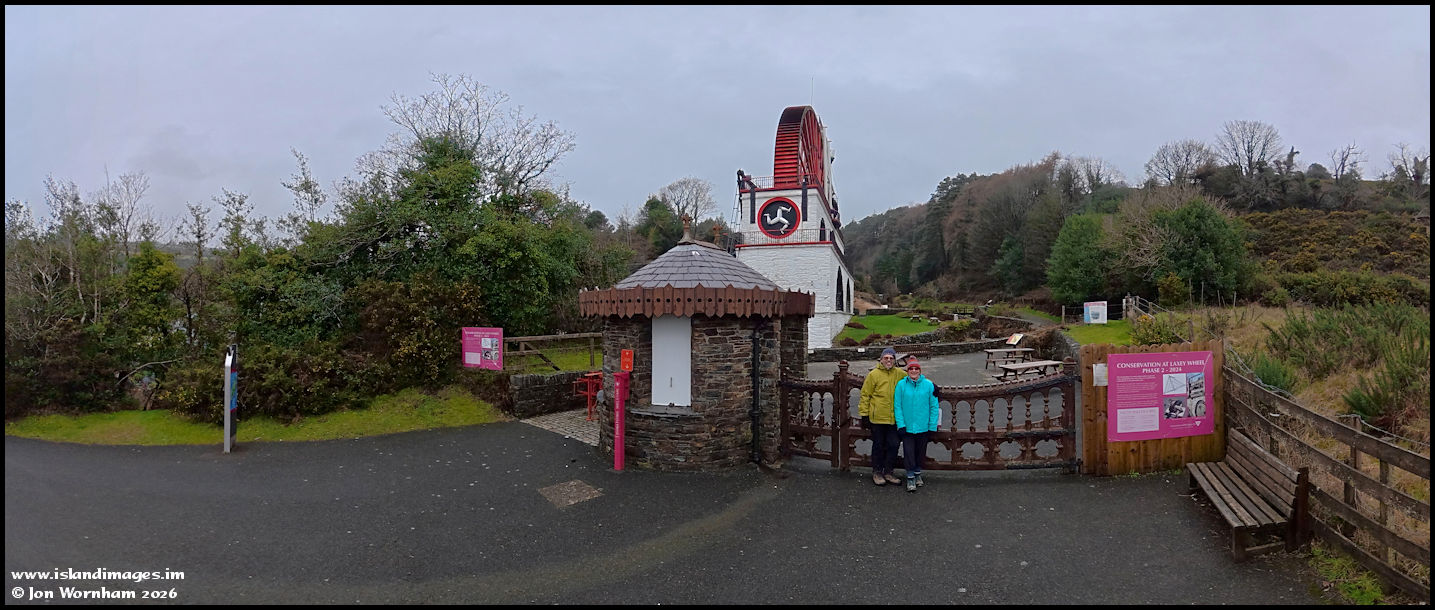 At the final location for my video, the Laxey Wheel. I met this lovely couple who posed for the panorama, they were over from England on holiday - yes, some people do visit the island in February!