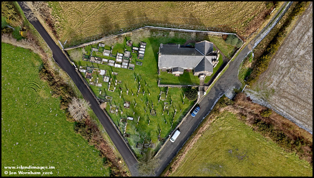 A near vertical view of ST Luke's Church and graveyard. The school section had it own entrances on the south side, one for boys and one for girls, and was separated from the church side (eastern) by moveable partitions.