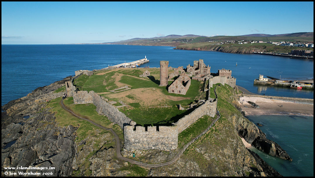 Moving the angle around to look past the castle and along the west coast of the island to Jurby Head.