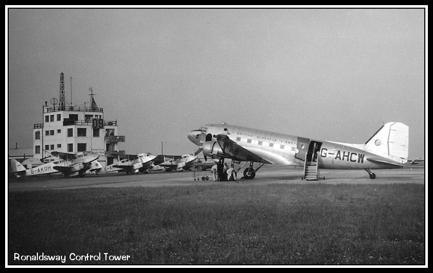BEA Dakota G-AHCW dates this picture between 1946 and 1949. A nice row of DH Dragon Rapides behind.