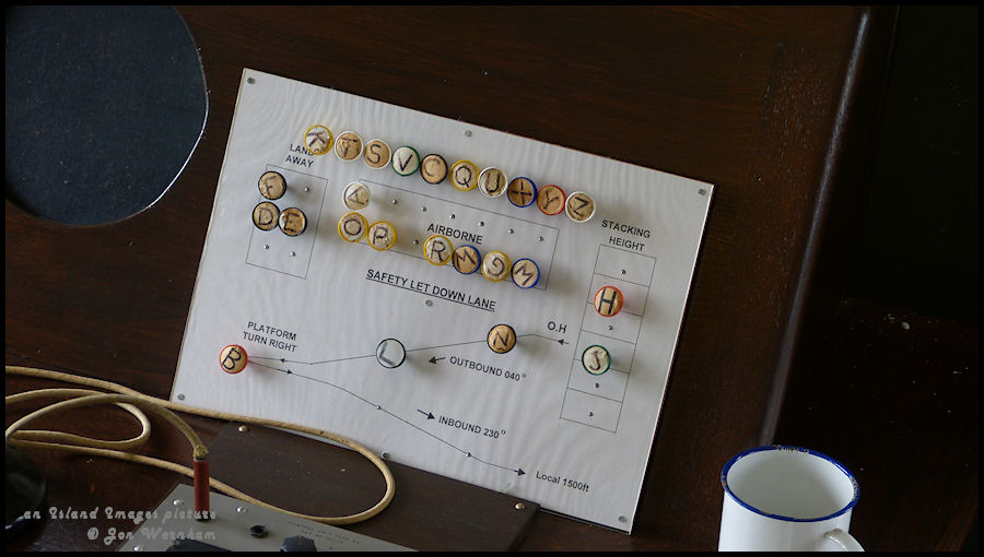 The Approach Controller's pinboard. Each pin represents an individual aircraft and is moved around the board to indicate the position of approaching aircraft
