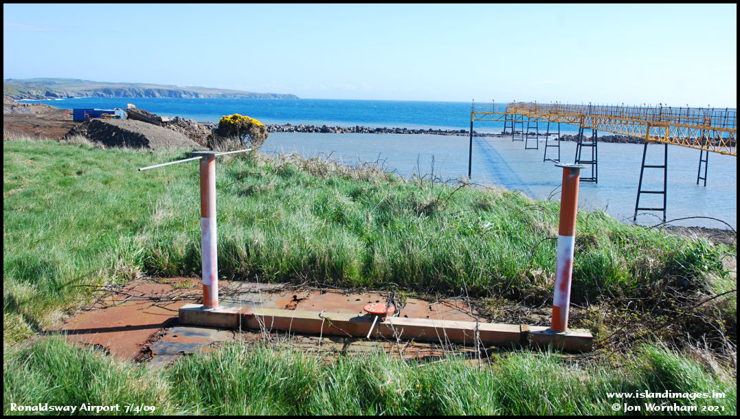 The aerial for the ILS Inner Marker survived long after the beacon was taken out of service, pictured here in 2009 shortly before it was swept away by the runway extension project.