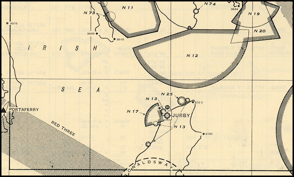 Charts handbook. Jurby shown surrounded by various Danger Areas. N17 is
