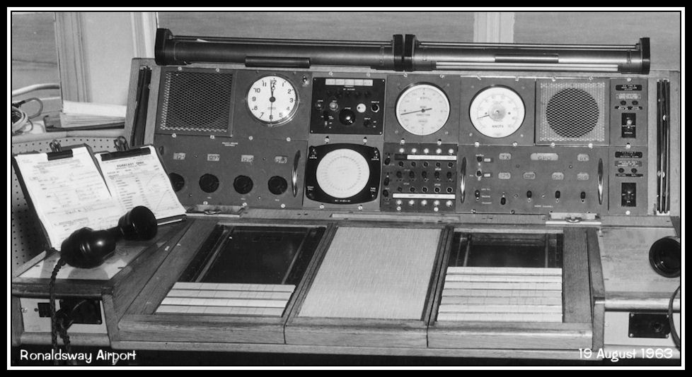 Latest weather report & Regional QNHs from Met clipped to the board on left side. AD210 VHF D/F centre