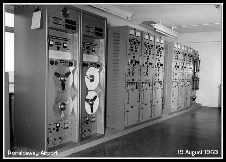 The 1950s Control Room, refurbished as a Tels equipment room. The tape recorders in the foreground were for recording radio transmissions, VHF radio equipment beyond.