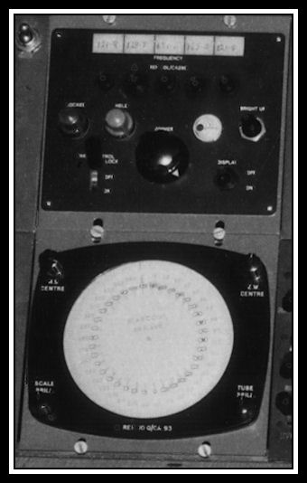 The Marconi AD210 Direction Finder. Selectable on any of the Ronaldsway frequencies or distress frequency 121.5, a blue line would trace across the screen showing bearing of the transmission