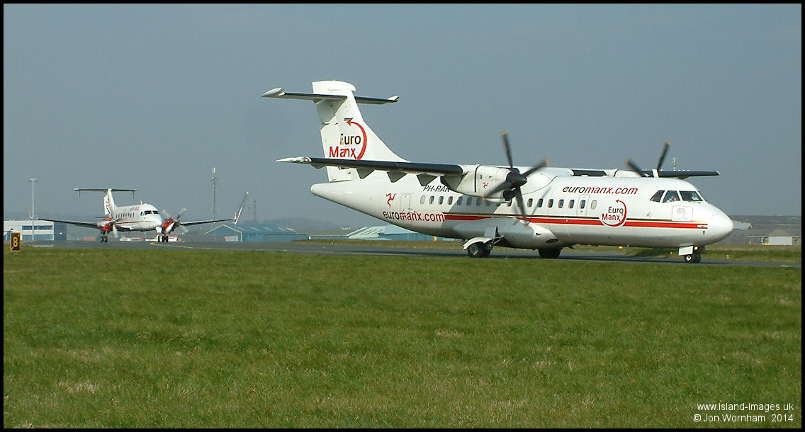 Rossair ATR42-300 PH-RAK taxies out, followed by Beech 1900D PH-RAR, both operating services for EuroManx