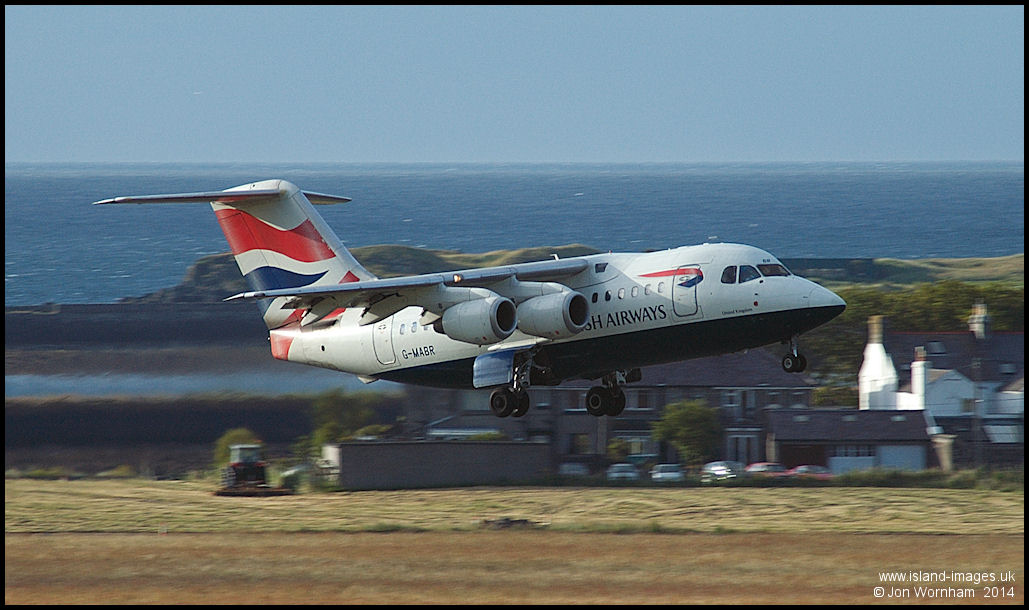 BA CitiExpress BAe 146-100 G-MABR departing from runway 26. This aircraft replaced long serving G-MIMA in May 2005