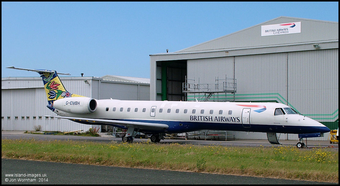 BA CitiExpress Embraer ERJ145 G-EMBH outside the maintenance base at Ronaldsway