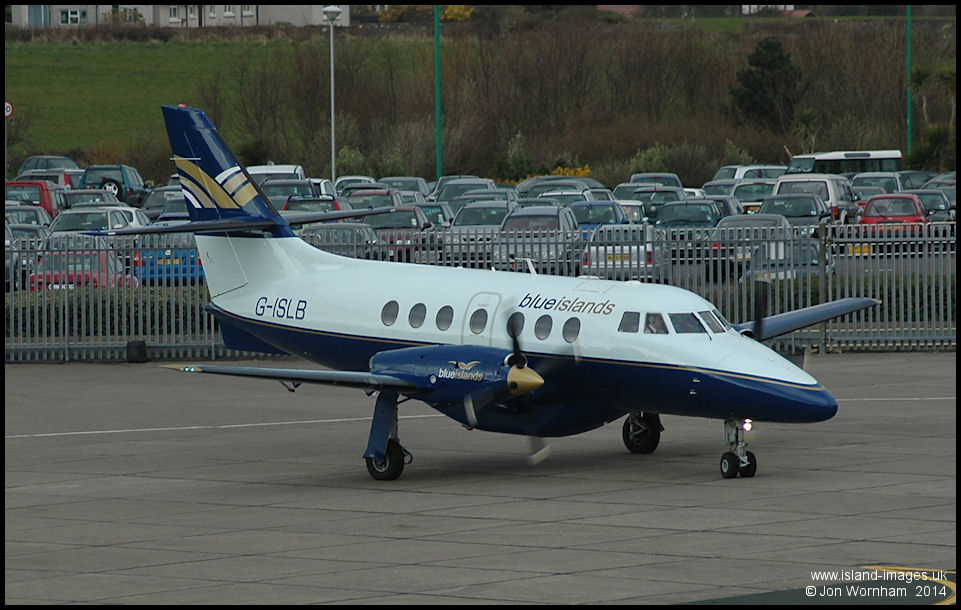 Blue Islands Jetstream 32 parking on the west apron after arriving from the Channel Islands