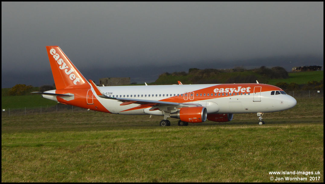EasyJet Airbus A320 G-EZOR at Ronaldsway in January 2017