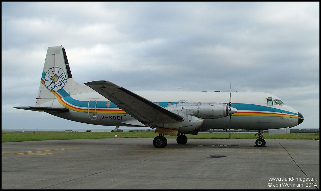 Emerald Airways Avro 748 G-SOEI, still wearing the colours of its previous owner - Mt Cook Airlines of New Zealand