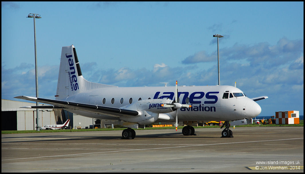 Janes Aviation Avro 748 G-AYIM on stand 13 at Ronaldsway