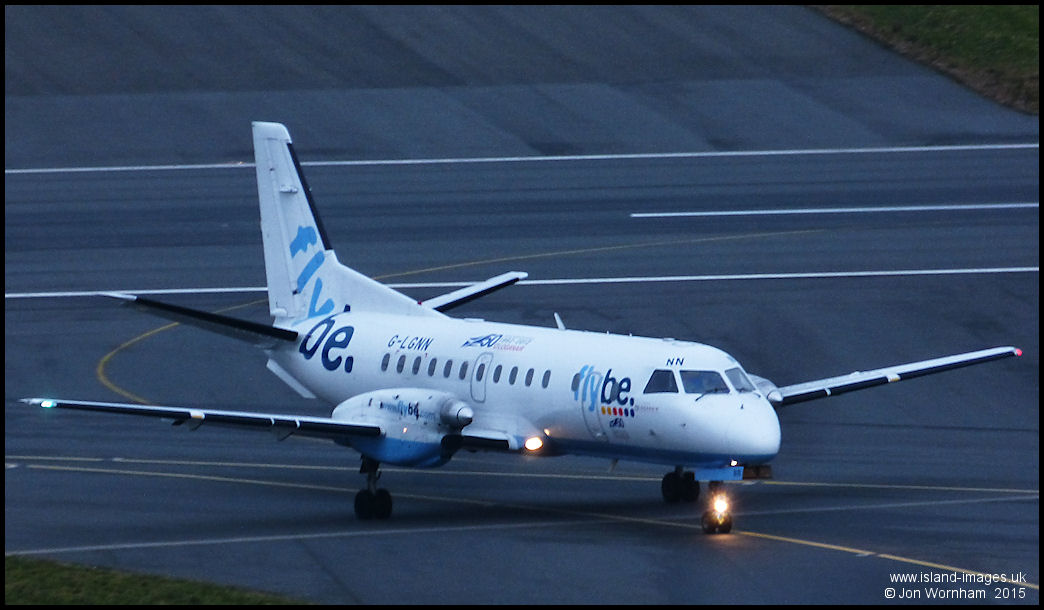 Loganair Saab 340B G-LGNN taxies in after arriving at Ronaldsway from either Glasgow of Edinburgh