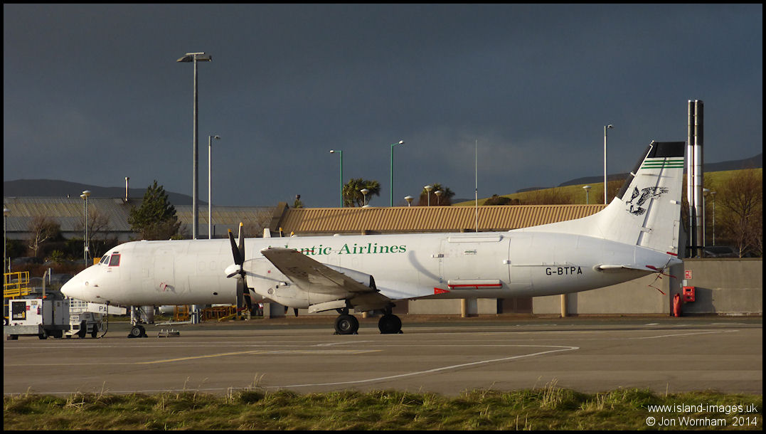 Atlantic fly the mail flights to and from the island, arriving at aiport opening tie of 06:15 and departing again shortly before evening closing