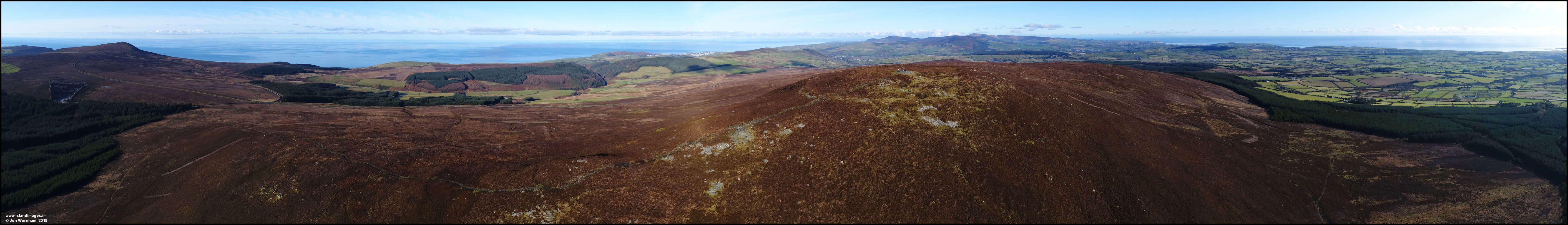 Panorama past the summit of South Barrule, with Cronk-ny-Arrey-Laa on the left, just reaching to Langness on the far right.