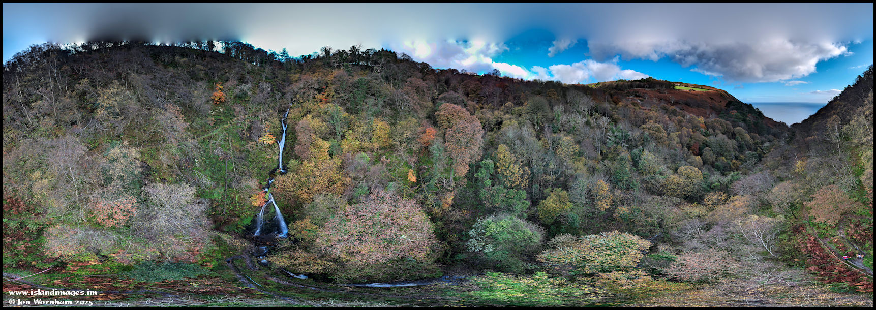 Dhoon Glen Waterfall panorama.  This 360 degree panorama didn't work out 100% as I'd wanted, as I only noticed when running the stitching process that I'd cut off the tops of the trees on the skyline! Click image for the interactive version.
