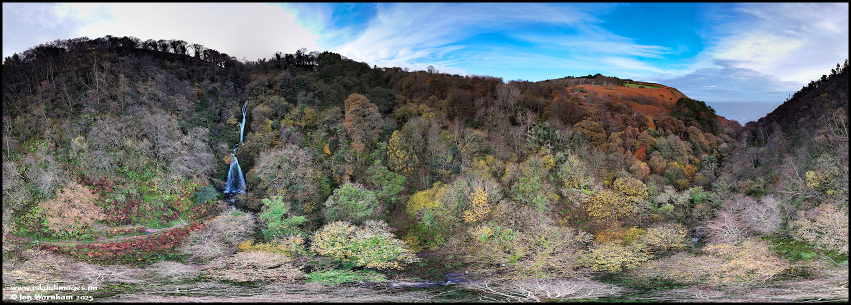 A 360 degree panorama over the Dhoon Glen. Although this time I managed to get all of the tree tops in, a sheet of thin white cloud right over the sun spoiled the picture somewhat.
