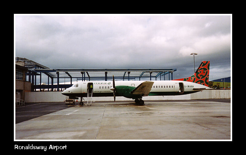 Repainted into the new colour scheme, Manx Airlines ATP, G-MANA, stands in front of