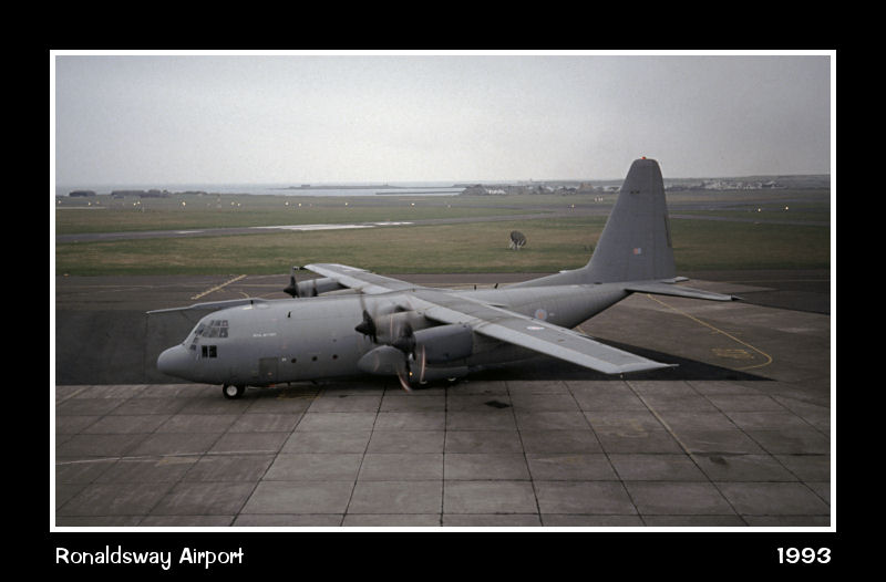 An unidentified RAF C130K Hercules parkes in front of the tower