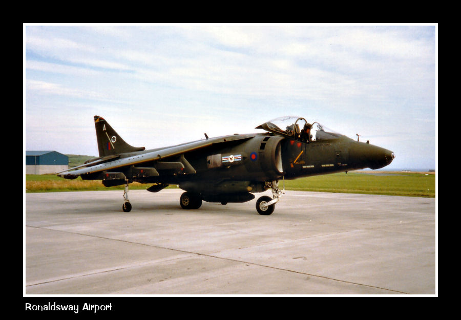 RAF Harrier GR5 ZD322 parked on the east apron, probably for the Jurby airshow