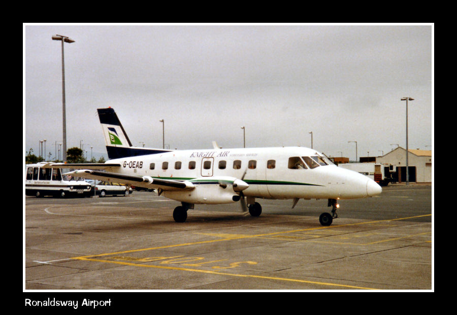 Second aircraft in the Knight Air fleet was EMB110 G-OEAB. seen parked on the east apron