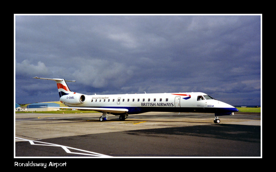British Regional EMB145 G-EMBL in the BA 'Chatham' colours. This was the first 145 in these colours and is pictured parking after its delivery flight, which dates this to September 1999