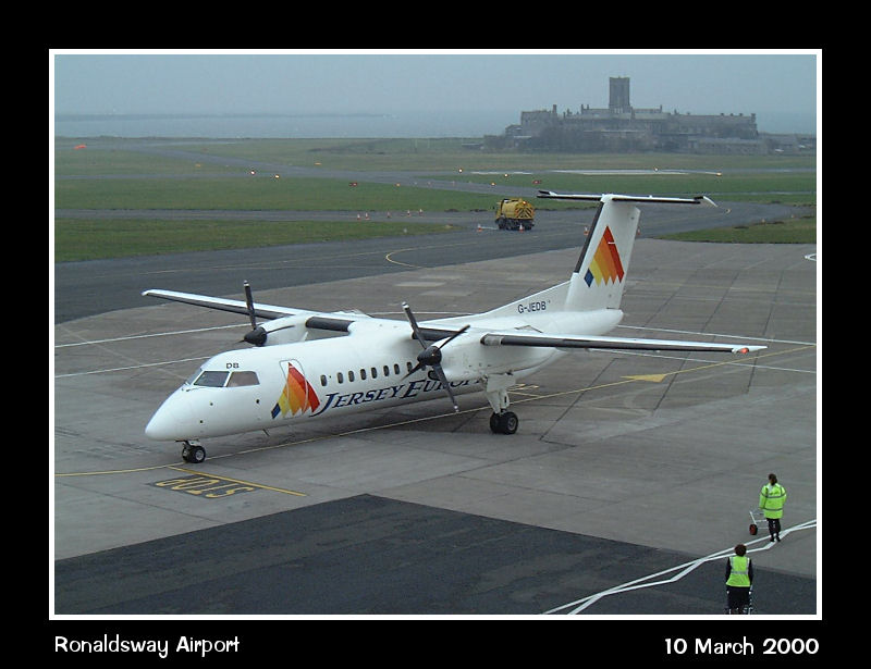 Jersey European Dash8-200, G-JEDB, on stand 4
