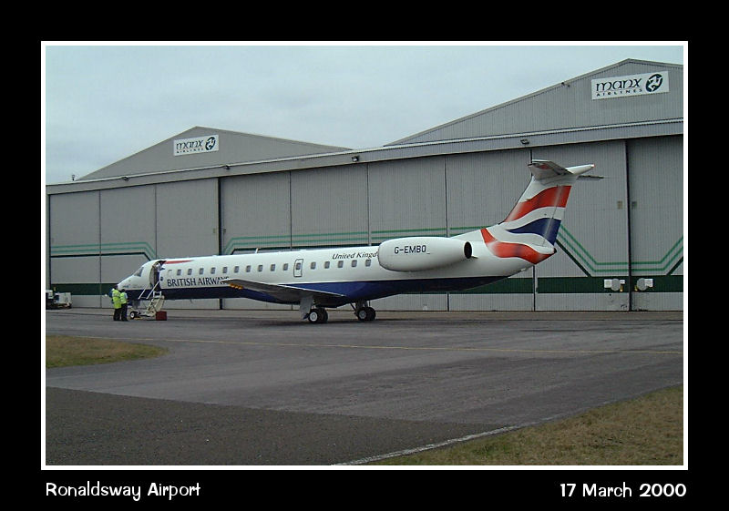 British Regional EMB145, G-EMBO, outside the Manx Airlines maintainance facility.