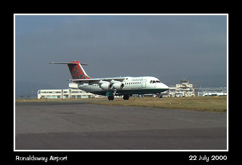 Manx Airlines BAe146-200, G-MIMA, touches down returning from London Heathrow