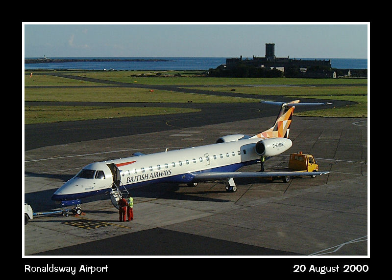 British Regional EMB145, G-EMBB, has just arrived and is about to be towed to the hanger