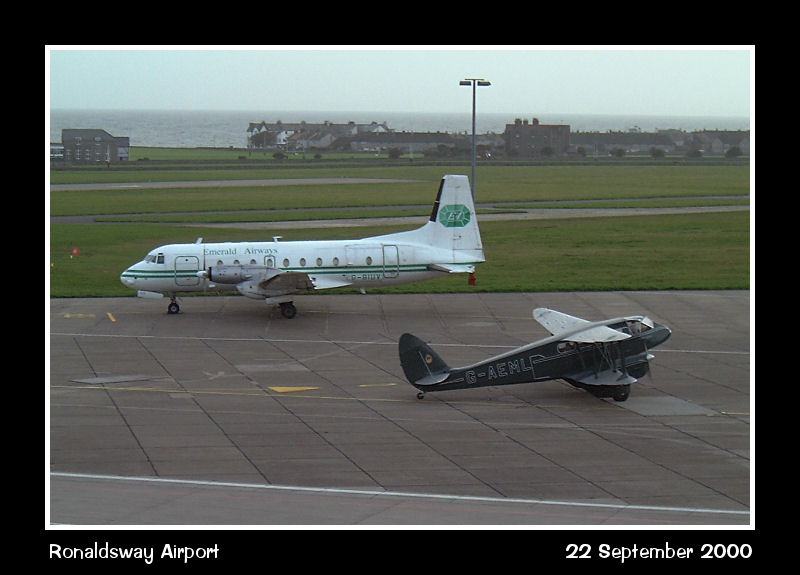 At one time the regular type serving the Isle of Man, DH89A Dragon Rapide, G-AEML, taxies in.