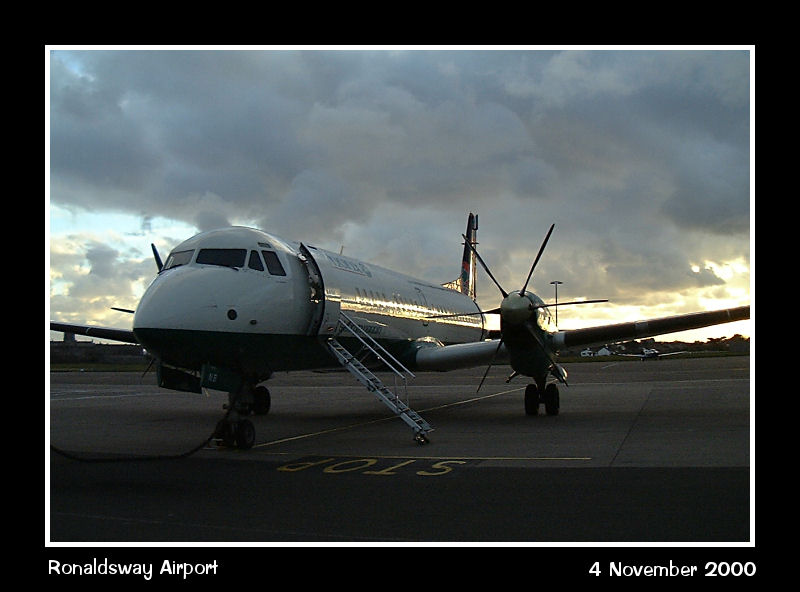 A manx Airlines ATP pictures against a late afternoon Winter sky
