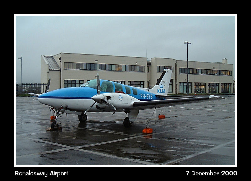 Visiting KLM Beech Baron, PH-BYB, parked on a wet west apron