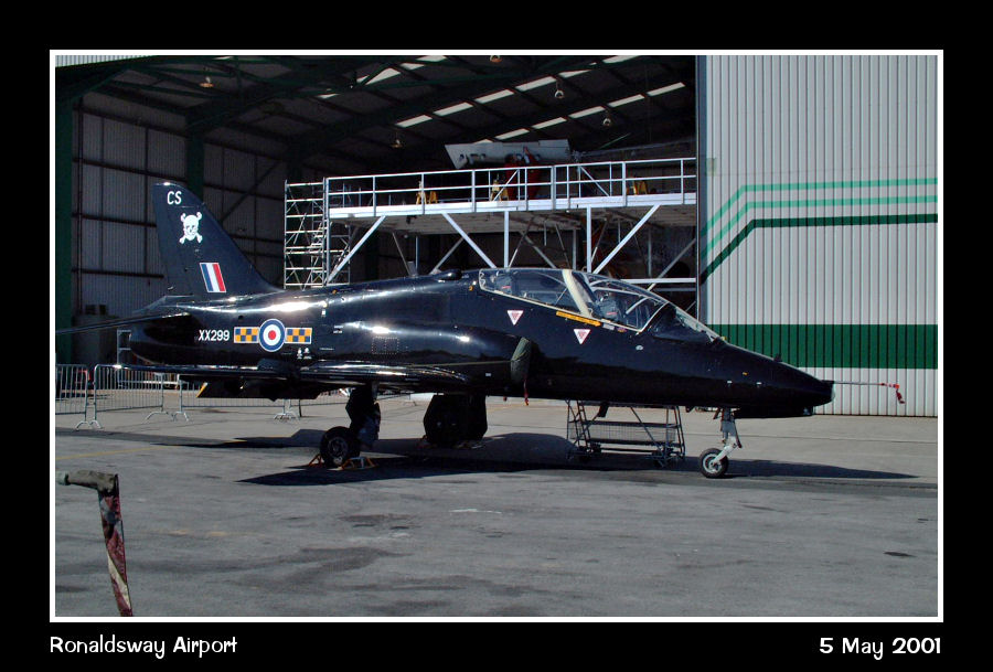 RAF 100 Sqn Hawk T1 XX299 parked outside the Manx Airlines engineering facility